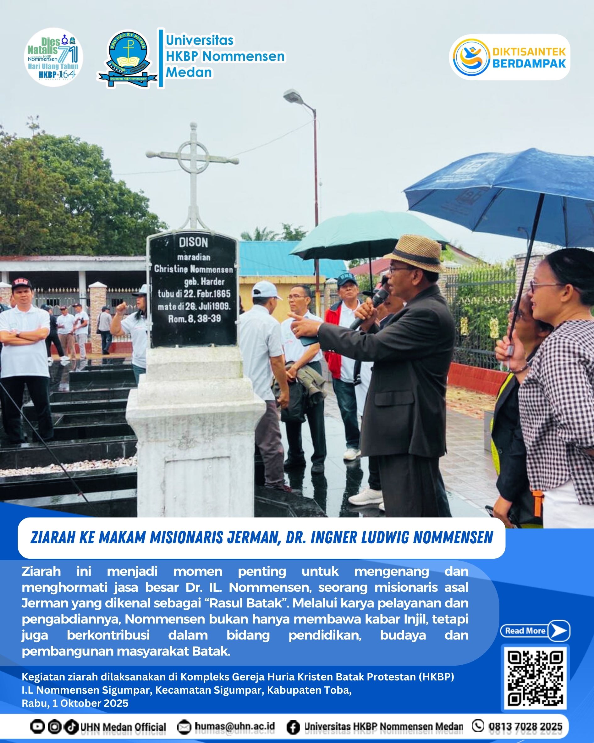 Universitas HKBP Nommensen (UHN Medan) melaksanakan kegiatan Ziarah ke Makam misionaris Dr. Ingwer Ludwig Nommensen (IL. Nommensen) sebagai bagian dari rangkaian Dies Natalis ke-71 UHN sekaligus memperingati Hari Ulang Tahun Huria Kristen Batak Protestan (HKBP) ke-164, pada hari Rabu (1/10/2025) di Kompleks Gereja Huria Kristen Batak […]