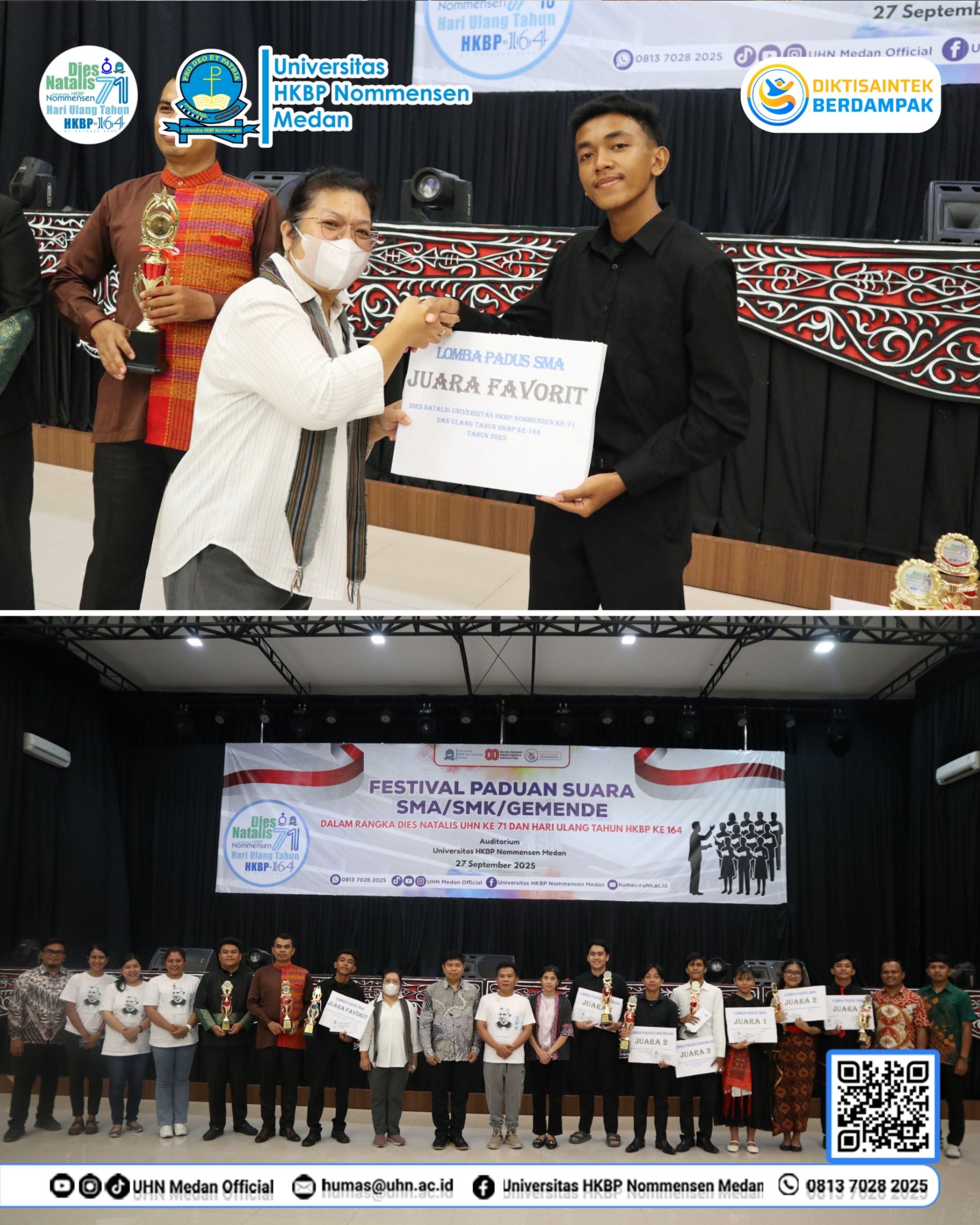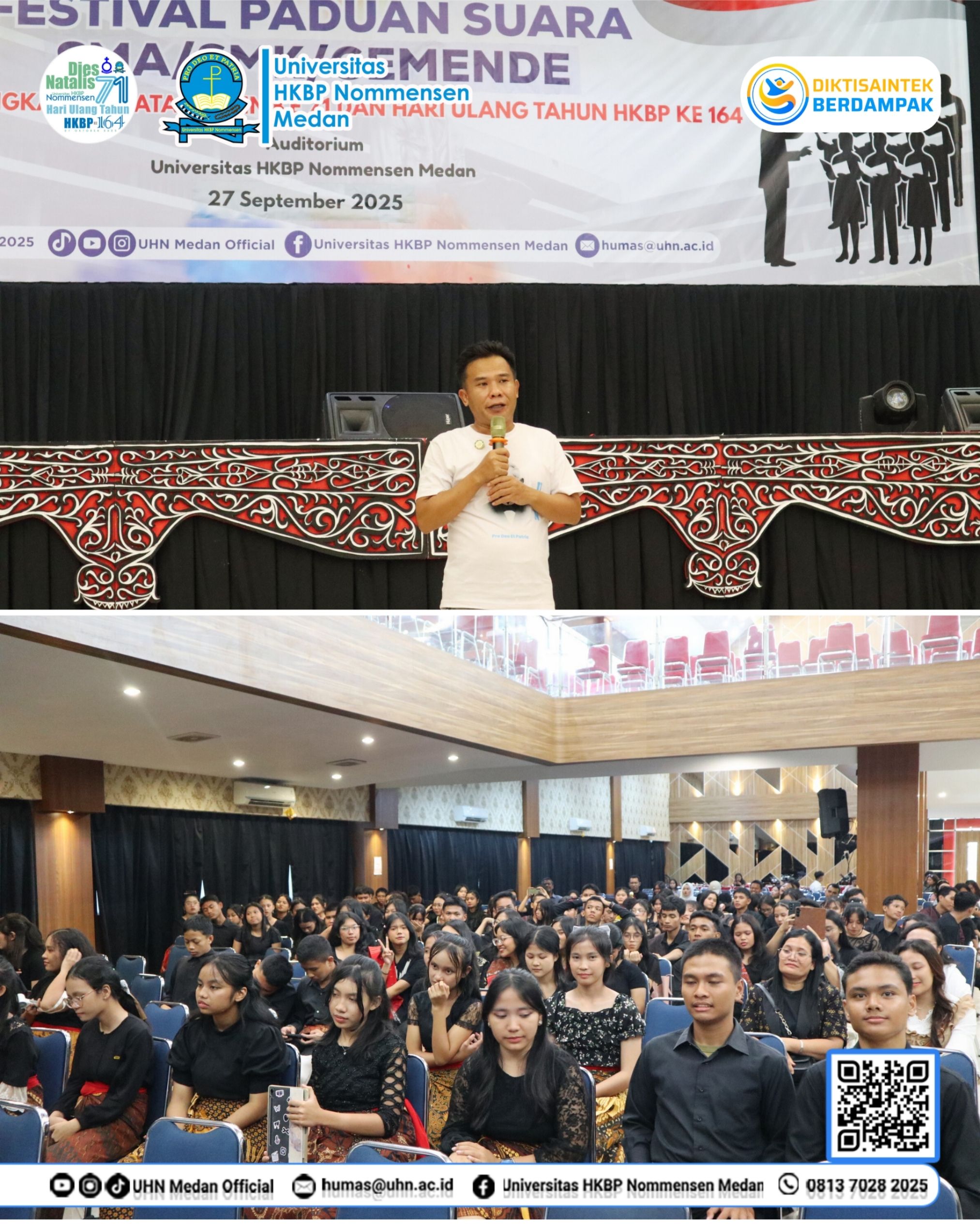Universitas HKBP Nommensen Medan sukses menyelenggarakan Festival Paduan Suara Campuran/Gemende dan Paduan Suara Tingkat SMA pada 27 September 2025 lalu, dalam rangka memperingati Dies Natalis ke-71 Universitas HKBP Nommensen sekaligus Ulang Tahun HKBP ke-164. Bertempat di Aula Universitas HKBP Nommensen Medan, acara ini diikuti oleh puluhan tim paduan suara dari berbagai sekolah dan komunitas, dengan jumlah peserta tiap tim antara 16 hingga 35 orang.