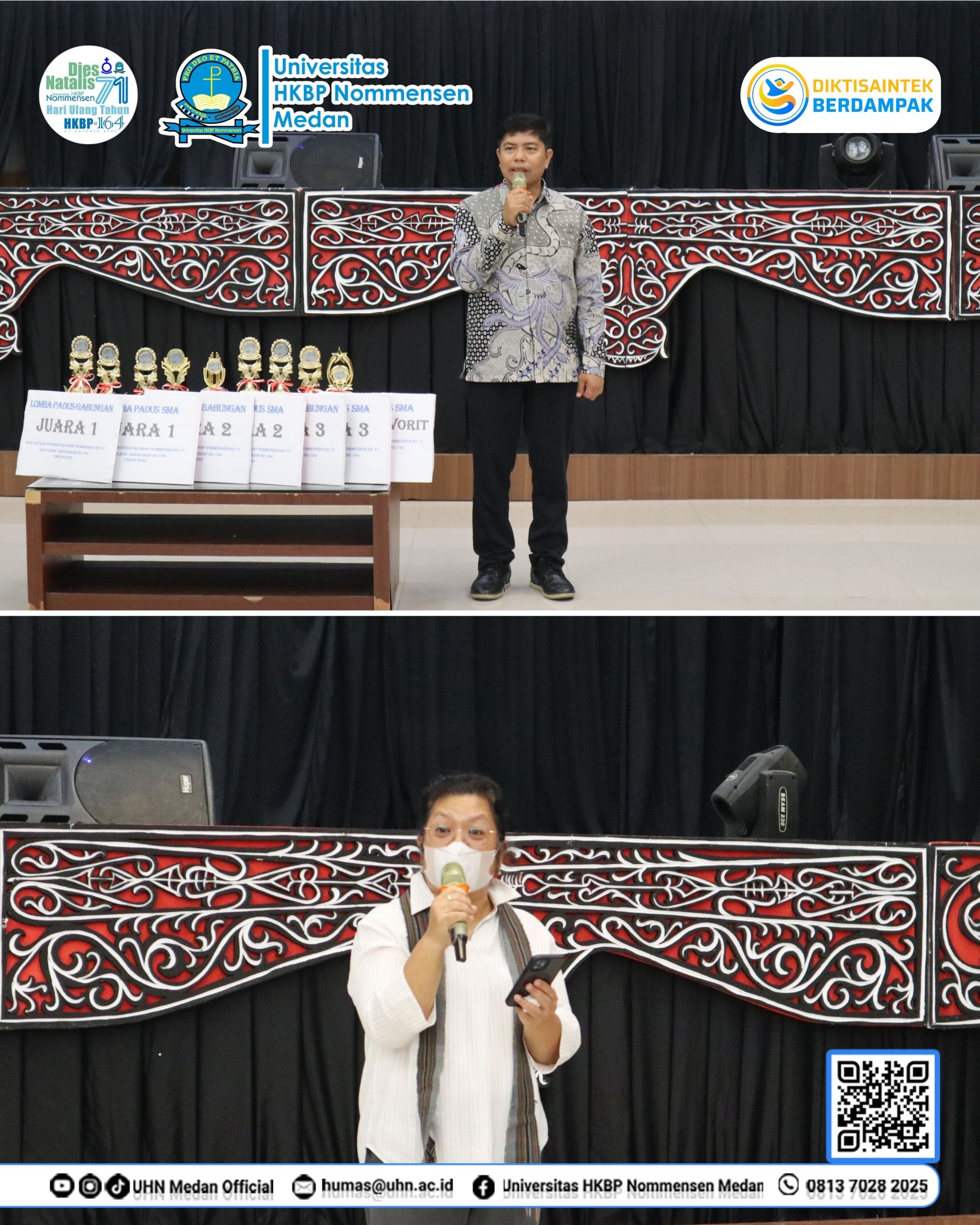 Ketua Yayasan Universitas HKBP Nommensen Dr. Effendi MS Simbolon yang diwakilkan oleh SekretarisYayasan Pdt. Dr. Enig S. Aritonang, menyampaikan apresiasi dan penghargaan yang setinggi-tingginya kepada semua pihak yang telah bekerja keras, baik panitia, peserta, guru pembimbing, dan semua pihak pendukung sehingga kegiatan ini berlangsung dengan meriah dan penuh semangat kebersamaan.