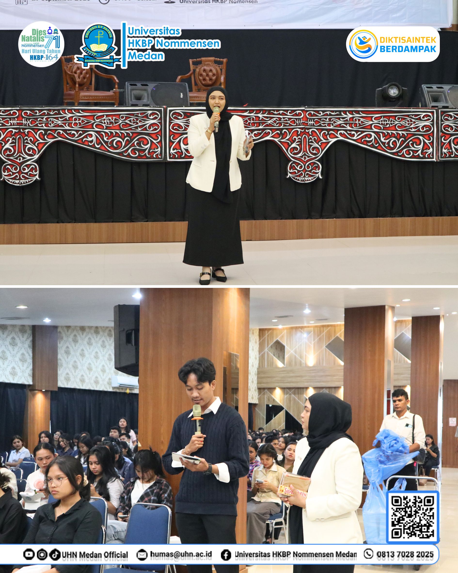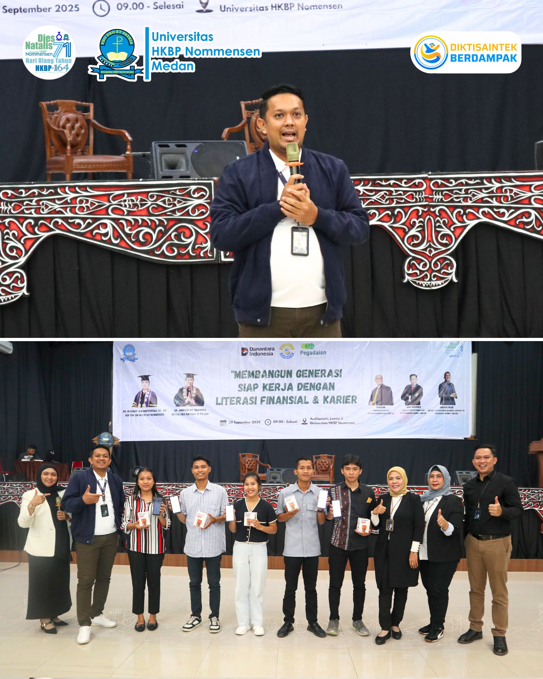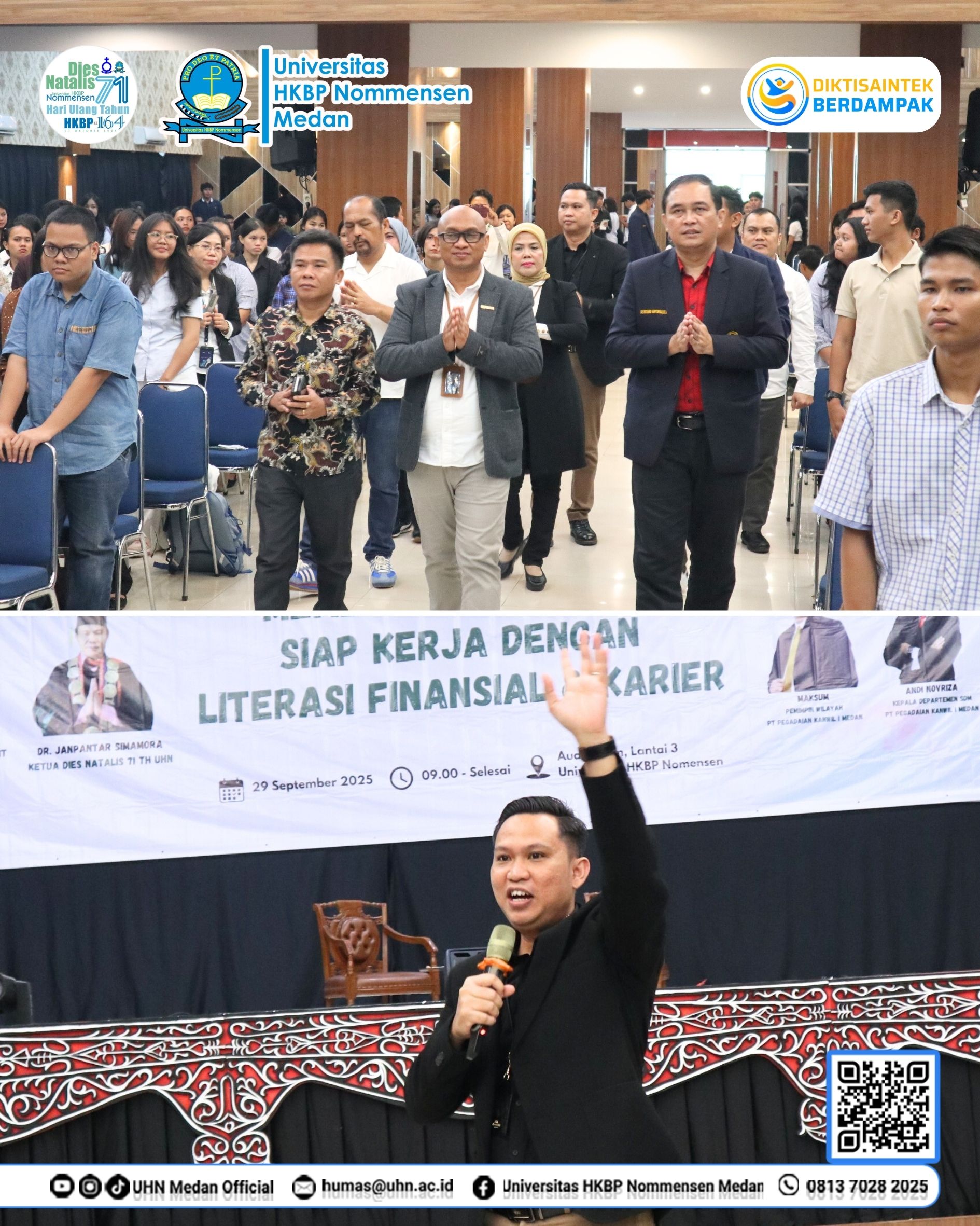 Universitas HKBP Nommensen (UHN Medan) bekerja sama dengan PT. Pegadaian Kanwil 1 Medan sukses menggelar Seminar Literasi bertajuk “Membangun Generasi Siap Kerja dengan Literasi Finansial & Karir”. Kegiatan ini menjadi salah satu rangkaian acara Dies Natalis ke-71 Universitas HKBP Nommensen sekaligus memperingati HUT HKBP ke-164. Seminar dilaksanakan di Auditorium Lantai 3 UHN Medan, Senin 29/9/2025 dengan dihadiri ratusan mahasiswa dari berbagai fakultas.