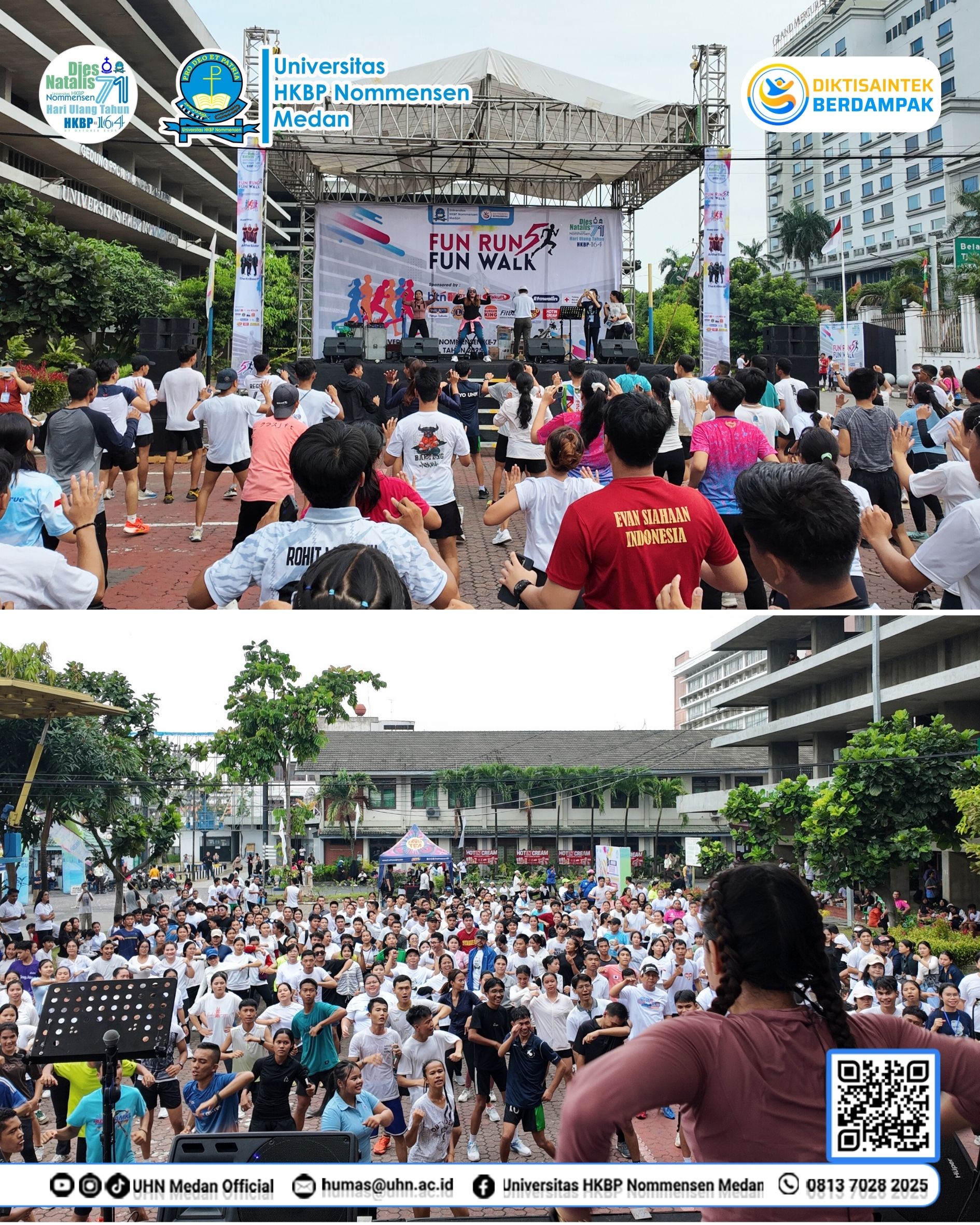 Medan, 27 September 2025 – Dalam rangka memperingati Dies Natalis Universitas HKBP Nommensen (UHN) ke-71 sekaligus Ulang Tahun HKBP ke-164, Universitas HKBP Nommensen Medan menyelenggarakan kegiatan Fun Run & Fun Walk serta senam Zumba yang terbuka untuk umum secara gratis. Acara ini juga dimeriahkan dengan pembagian doorprize menarik yang menambah semangat para peserta hingga akhir kegiatan.