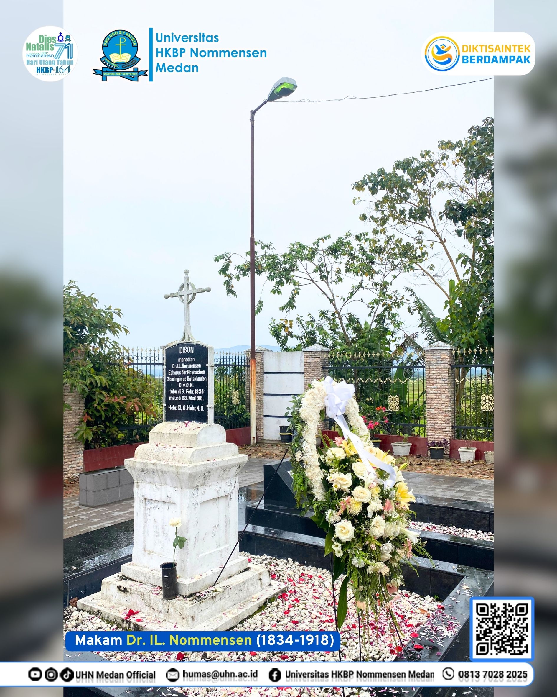 Universitas HKBP Nommensen (UHN Medan) melaksanakan kegiatan Ziarah ke Makam misionaris Dr. Ingwer Ludwig Nommensen (IL. Nommensen) sebagai bagian dari rangkaian Dies Natalis ke-71 UHN sekaligus memperingati Hari Ulang Tahun Huria Kristen Batak Protestan (HKBP) ke-164, pada hari Rabu (1/10/2025) di Kompleks Gereja Huria Kristen Batak Protestan (HKBP) I.L Nommensen Sigumpar, Kecamatan Sigumpar, Kabupaten Toba.