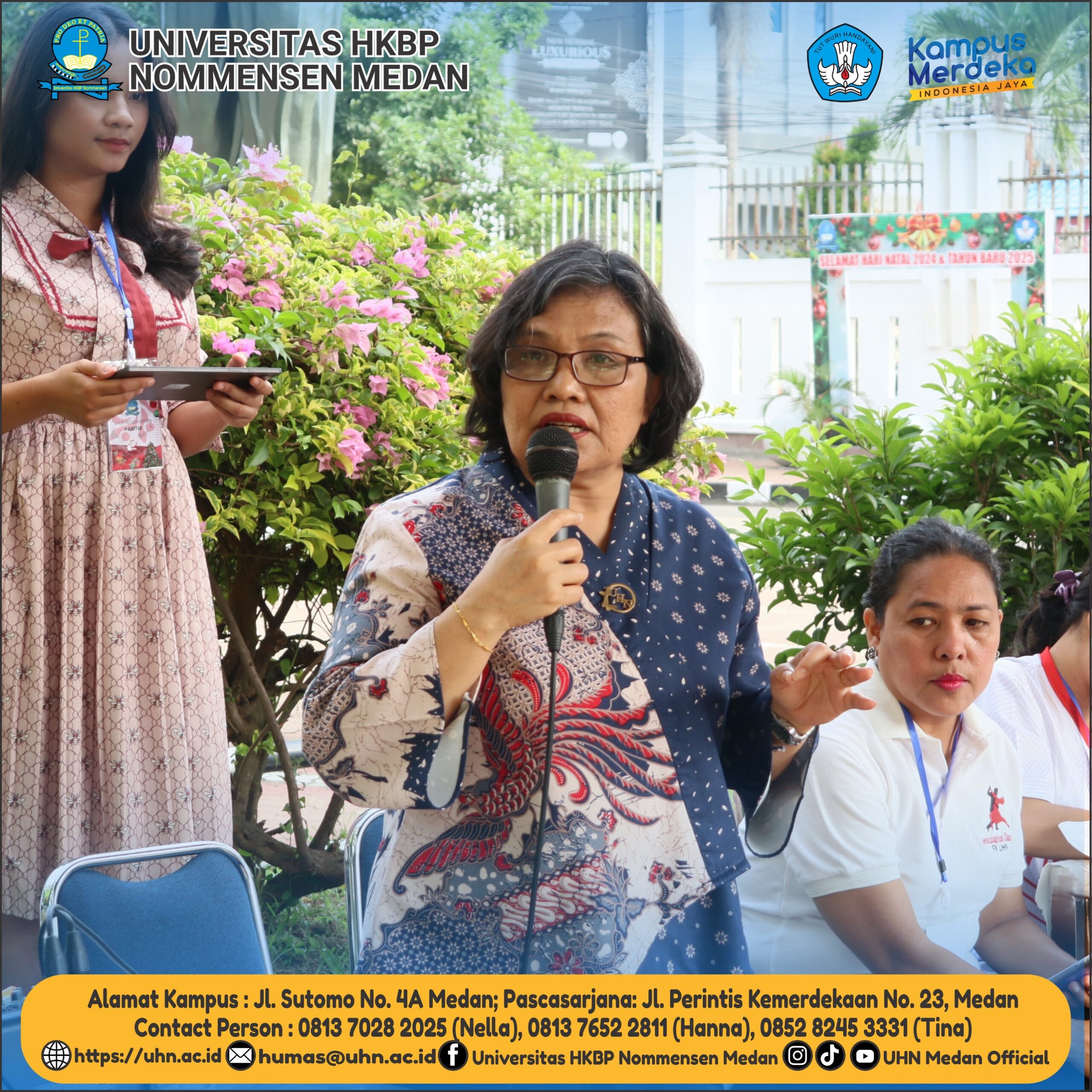Panitia Natal UHN Medan 2024 melaksanakan pemeriksaan kesehatan Gratis mahasiswa, pegawai, dan dosen, sebagai wujud bakti sosial penuh kasih. Hal itu dikatakan oleh panitia natal dalam hal ini Ketua Pdt. TAP Simorangkir, STh, MM dan Sekretaris Dr. Yessy Octaviani, SS, M.Pd di kampus UHN Medan baru-baru ini. Sebelum Natal, kita lakukan bakti sosial dalam bentuk pemeriksaan kesehatan gratis bagi tenaga kepdndidikan dan dosen UHN Medan di lapangan UHN Medan, (Sabtu, 14/12/2024)