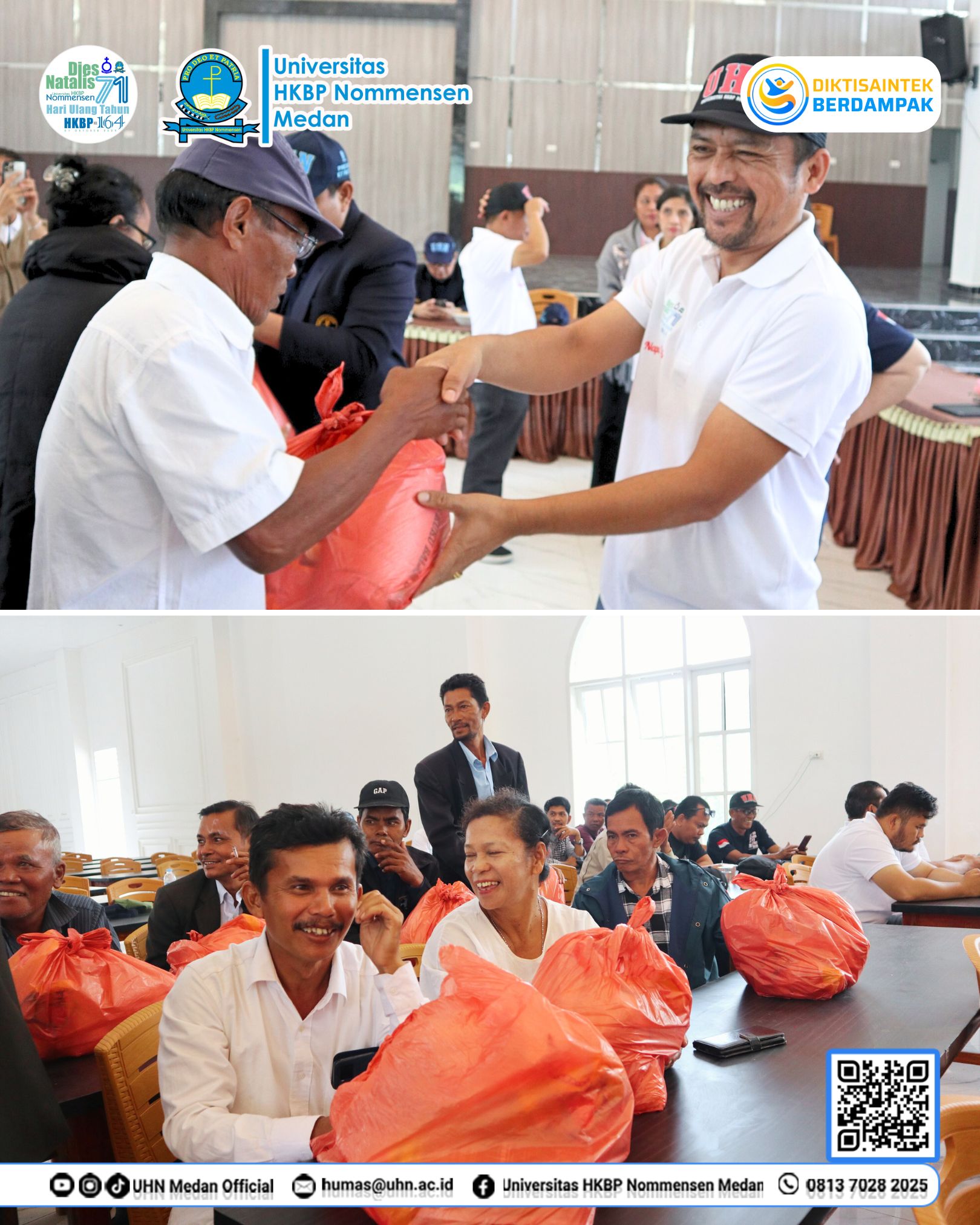 Universitas HKBP Nommensen Medan (UHN) menggelar kegiatan bakti sosial di Aula HKBP Sigumpar sebagai bagian dari perayaan Dies Natalis ke-71 UHN sekaligus memperingati Hari Ulang Tahun ke-164 HKBP, yang diselenggarakan di Aula HKBP Sigumpar, Rabu (1/10/2025). Kegiatan ini menjadi momentum penting untuk meneguhkan komitmen UHN sebagai universitas yang lahir dan bertumbuh bersama gereja HKBP dalam pelayanan pendidikan.